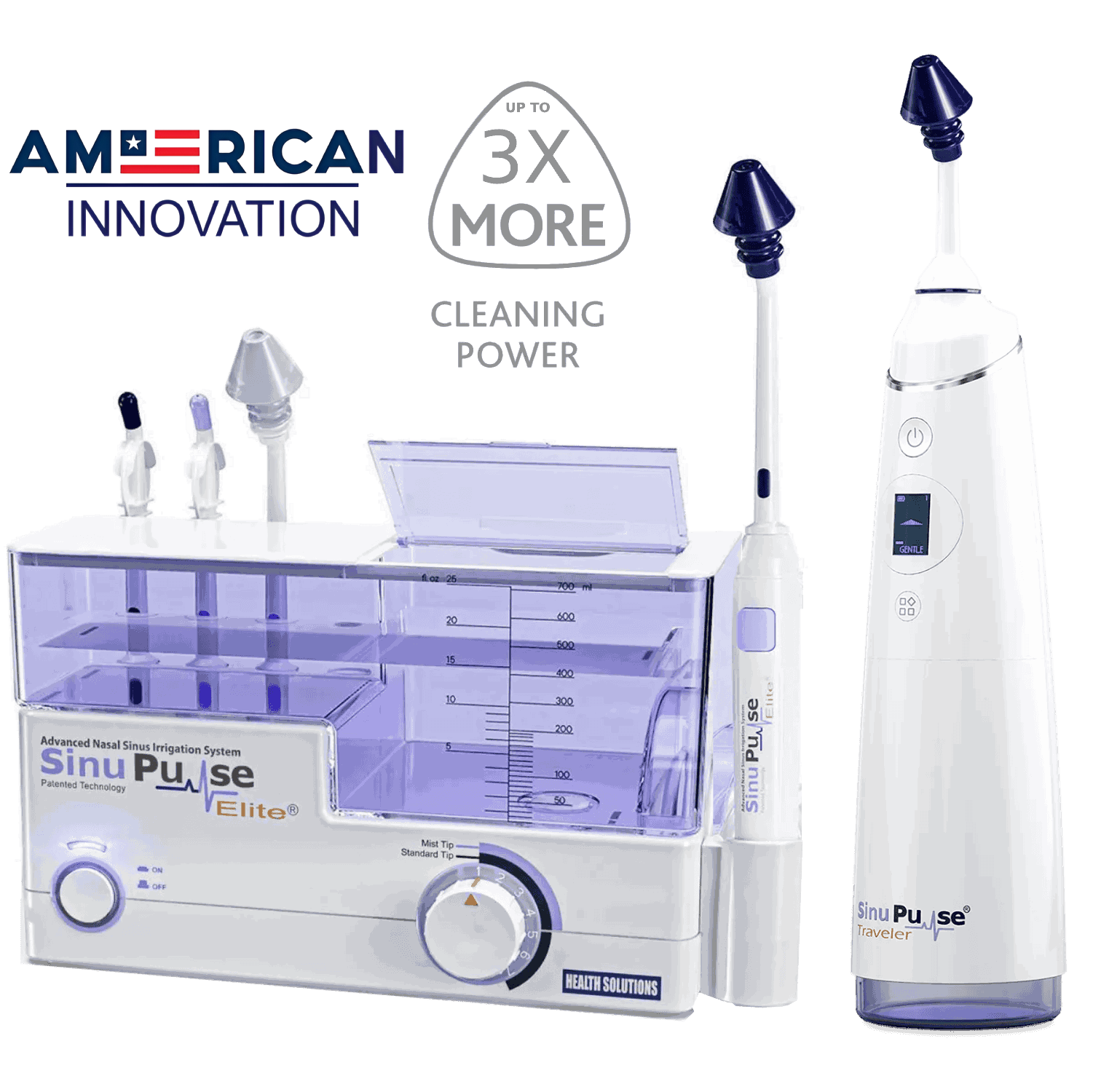 SinuPulse® — America’s original sinus irrigator company since 1996. Pioneering nasal irrigation for nearly 30 years, SinuPulse has set the standard for American innovation and trusted relief. Millions rely on our pulsatile technology for clearer breathing and rapid relief from sinus infections, allergies, colds, flu, and nasal congestion—in less than a minute.