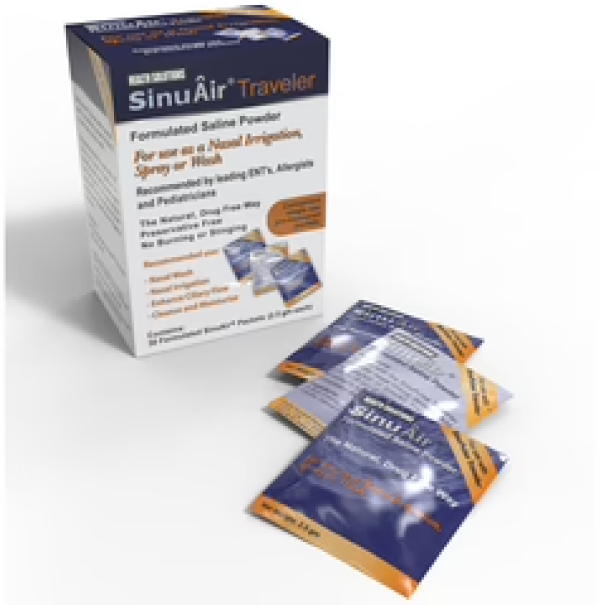 All of our SinuPulse models can be used with any saline products. SinuAir is an enhanced saline formulation that includes potassium and calcium salt compounds not found in other saline products. These additional salt compounds are similar to the composition of sea water and our own natural bodily fluids for maximum comfort and cleansing benefit. SinuAir moisturizes and helps maintain healthy ciliary function for comfortable clear breathing. SinuAir is available in 2.5g pre-measured packets (SinuAir Traveler) specifically for single serving use with the smaller capacity cordless Traveler model. SinuAir is available in our standard 5g pre-measured packets for single serving use with the larger capacity SinuPulse Elite counter top model. Both SinuAir packets are interchangeable. In addition, we offer economy refill bottles both 200g and 300g.